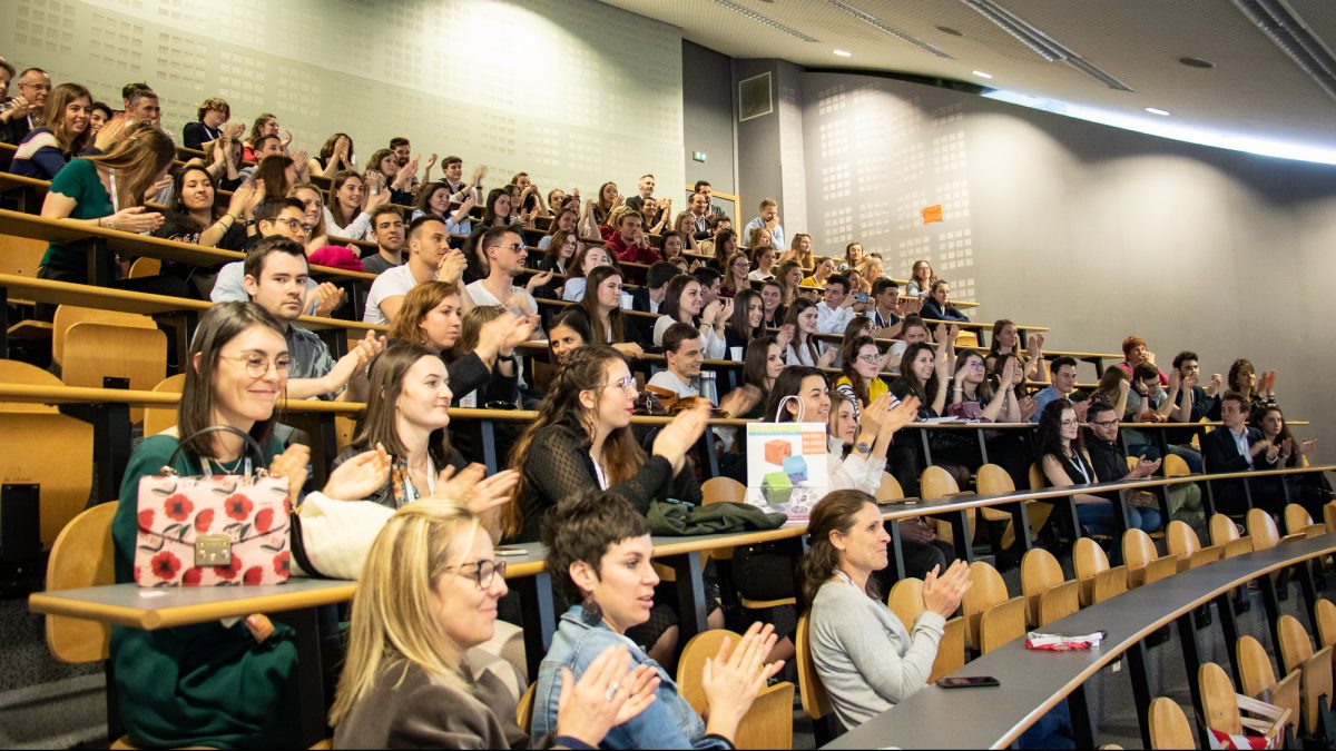 Tous les étudiants de première année se rassemblent dans l’amphithéâtre et passent chacun leur tour, selon un ordre bien établi. Il n’y a pas une seconde à perdre, c’est près de 60 présentations qui se succéderont au fil de la journée !